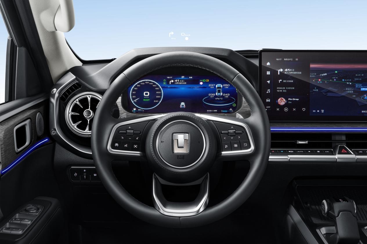 坦克400 Hi4-T车头部分展现了强大的硬核机能前脸,粗犷的双横辐中网、悬浮式刚劲线条前杠和科技感十足的“时空之眼”前大灯,呈现出未来感与冒险精神。“凌厉风刃”车身线条主次分明、有序分布,搭配铆钉外露的外凸轮拱,营造极致的肌肉感与力量感。车尾部分延续了狂野气息,采用半露式外挂备胎设计和层峦式立体尾灯,彰显机械狂野与都市绅士感。以外观为起点,坦克400 Hi4-T成功激起人们心中那份让人们敢于释放内心的野性、对于越野的向往。