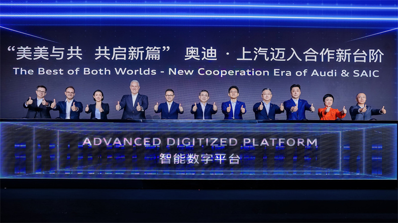 上汽集团以行业领先的智能电动创新技术,融合奥迪汽车强大的高端车型产品定义、整车研发、产品设计和工程技术能力,赋能技术新引擎,激活上汽奥迪品牌力,培育发展新动能,展现符合未来智能纯电汽车发展方向的新质生产力,也彰显了“美美与共 共启新篇”的合作精髓。