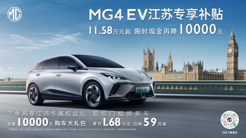江苏地区MG4 EV限时专供 10.58万起,再享万元购车权益!