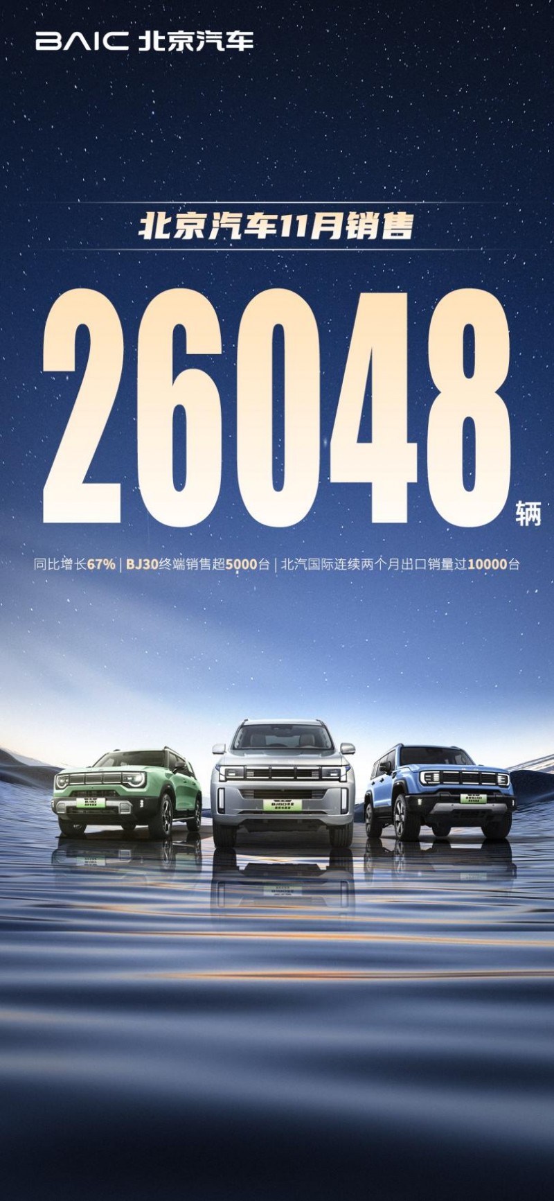 进入2024年底,北京品牌的市场销量节节飙升。数据显示,北京品牌9月销量同比增长29%,10月同比增长120%,11月同比增长67%;BJ30连续3个月单月销量超过5,000台,成为方盒子市场爆品;1-11月海外销量同比增长47%,连续两个月海外单月销量突破10,000辆。