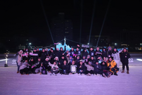 领克将“汽车文化”与“冰雪运动”有机融合,以亚冬会会徽和中国生肖蛇为灵感,广袤的松花江面为画布,以领克前后车灯为画笔进行挑战图案设计,通过长曝光模式捕捉拍摄灯源轨迹,从而在江面上创作出独一无二的艺术作品。中国光绘领域的领军人物王思博(Roy Wang)与来自全国各地的领克用户,经过近半小时的协同创作,在吉尼斯见证官的评定下,以38262.919㎡成绩成功挑战“最大汽车光绘图案”吉尼斯世界纪录。